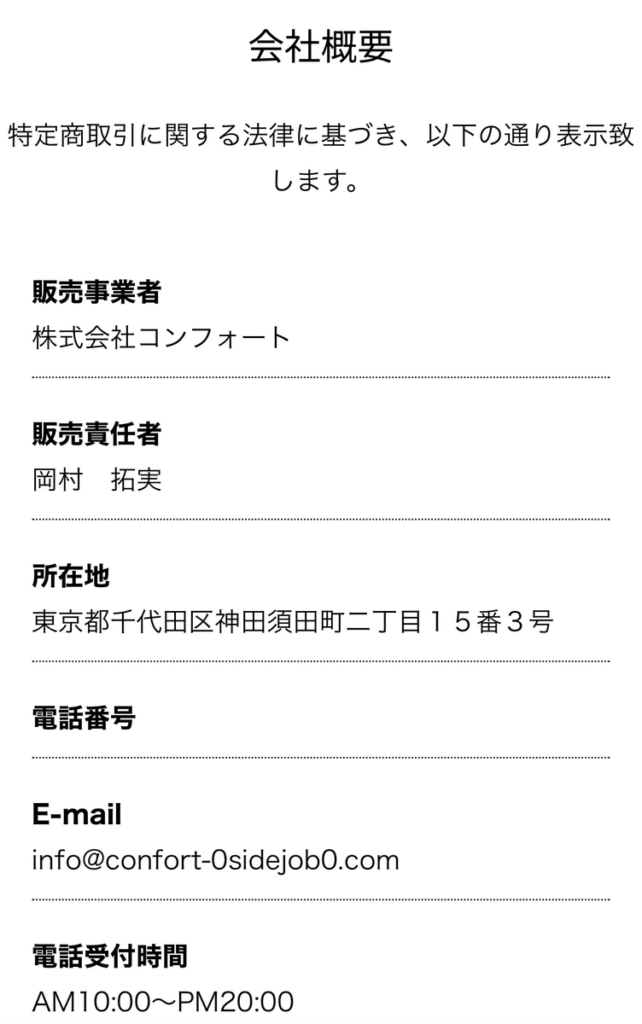 その他電話番号や代表者名なども怪しい点は見当たりません。